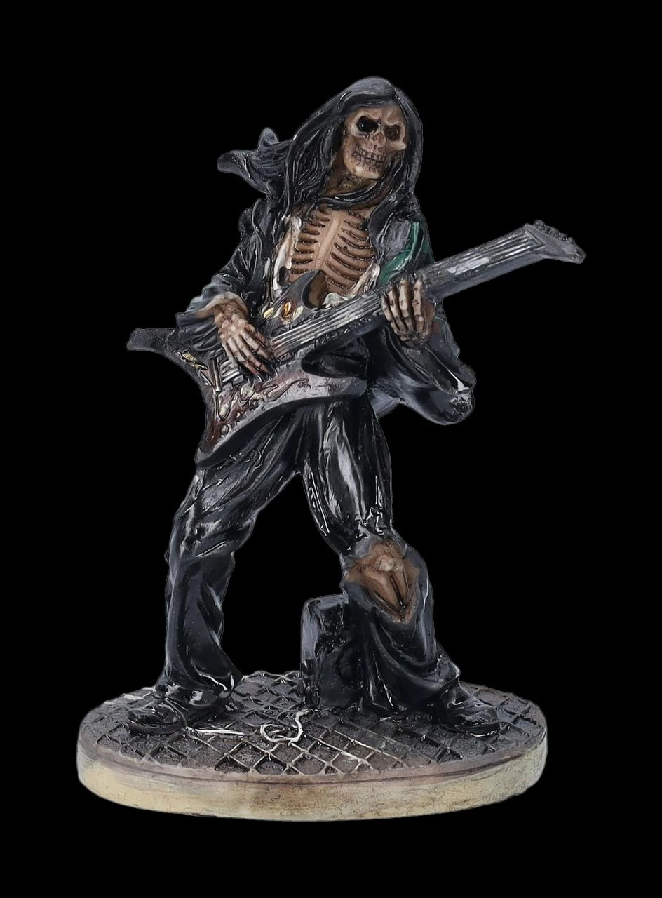 Diese Band rockt die Hölle, da tanzt sogar das Höllenfeuer und die Knochen wackeln, wenn die vier loslegen. Das witzige Skelett Figuren-Set One Hell of a Band aus Kunststein (Polyresin) wurde detailreich handbemalt. Die Figuren sind je 10 cm hoch, je 7 cm breit und je 4 cm tief und eine tolle Deko für Halloween oder für die nächste Party.