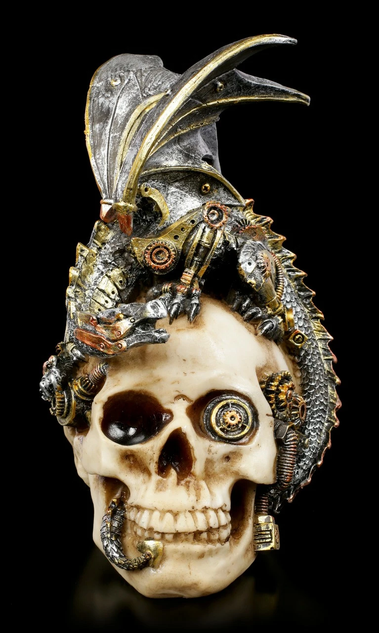 Drachenfigur im Steampunk-Look auf Totenkopf