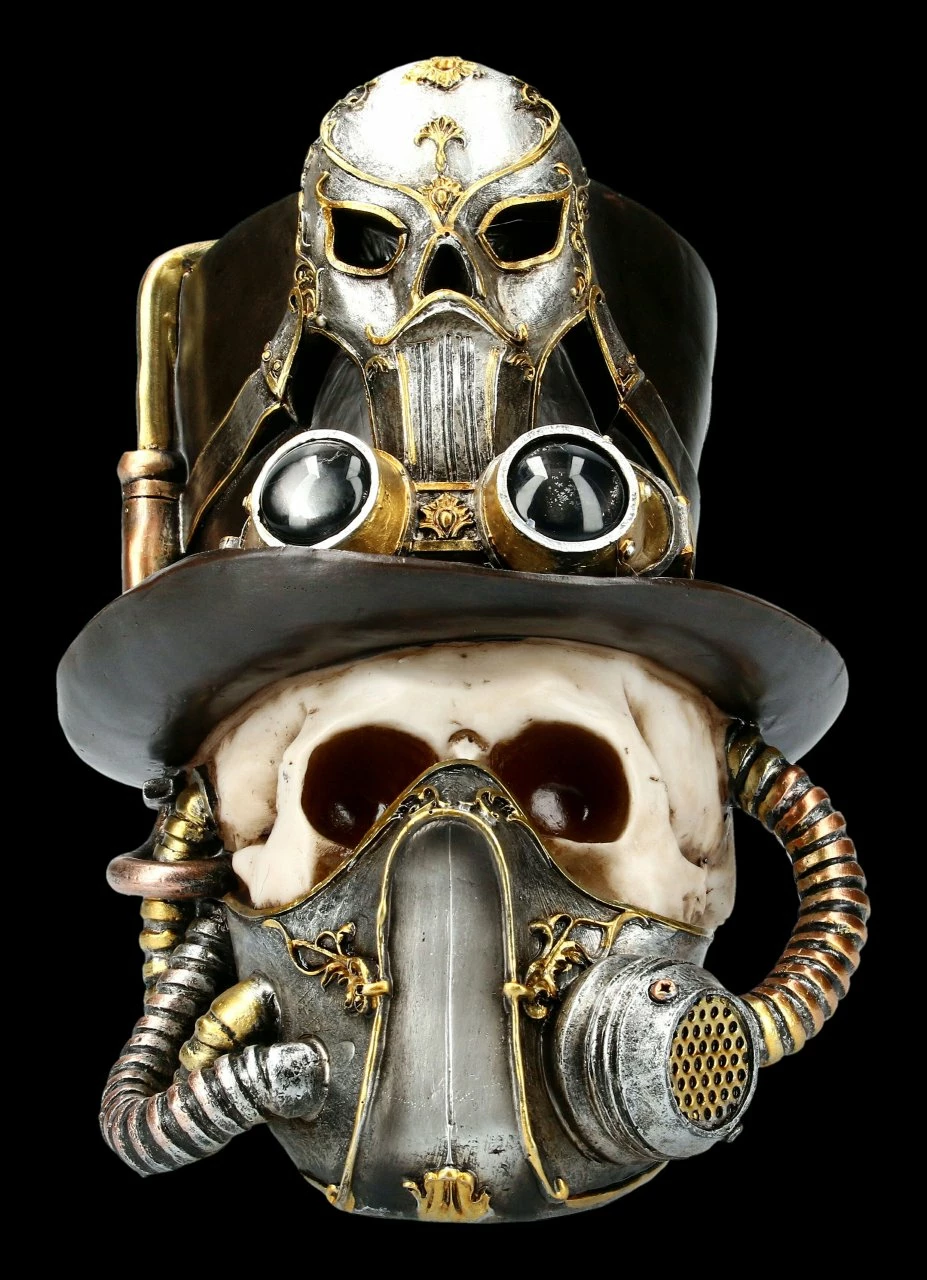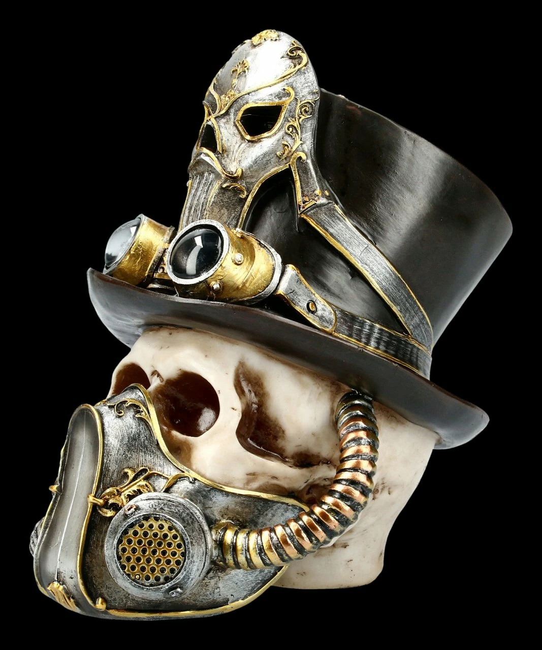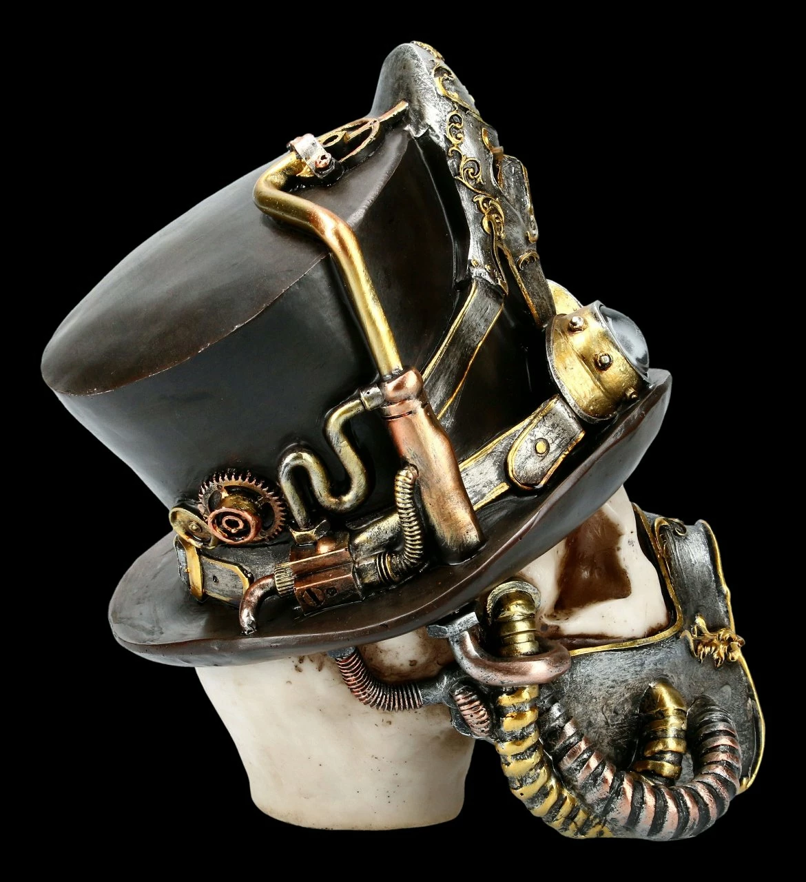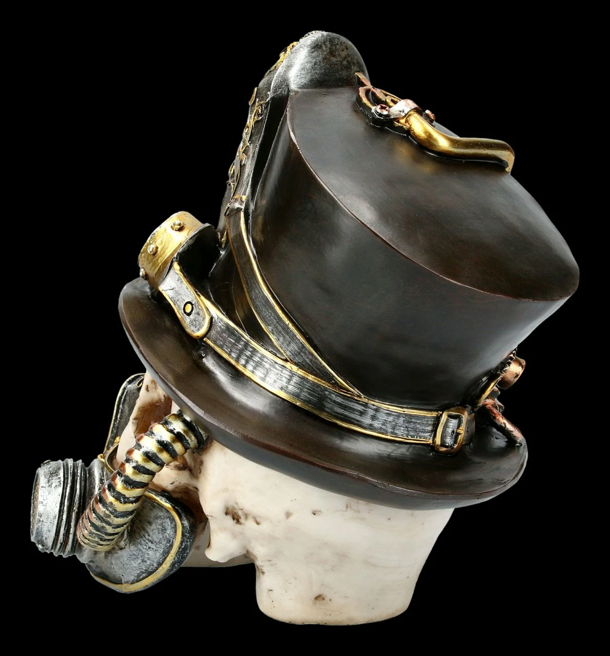 Toller Deko Totenkopf mit Hut und Maske im Steampunk-Look