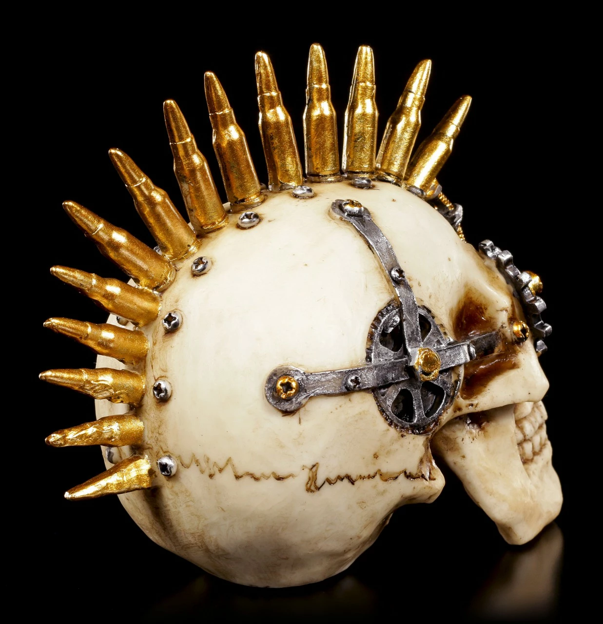 Wollen Sie auch das Besondere – etwas das nicht Jeder hat? Dann ist dieser Steampunk Totenkopf mit dem Namen Gears of War genau das Richtige für Sie. Der klassische Totenkopf verbirgt sich unter all den Schrauben, Zahnrädern und Patronen – er ist einfach etwas ganz Besonderes.