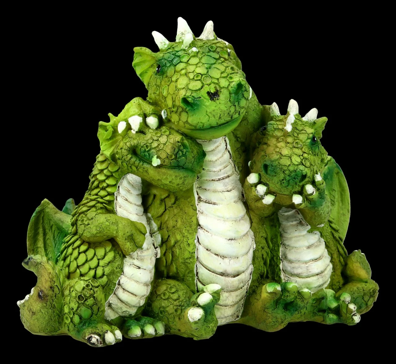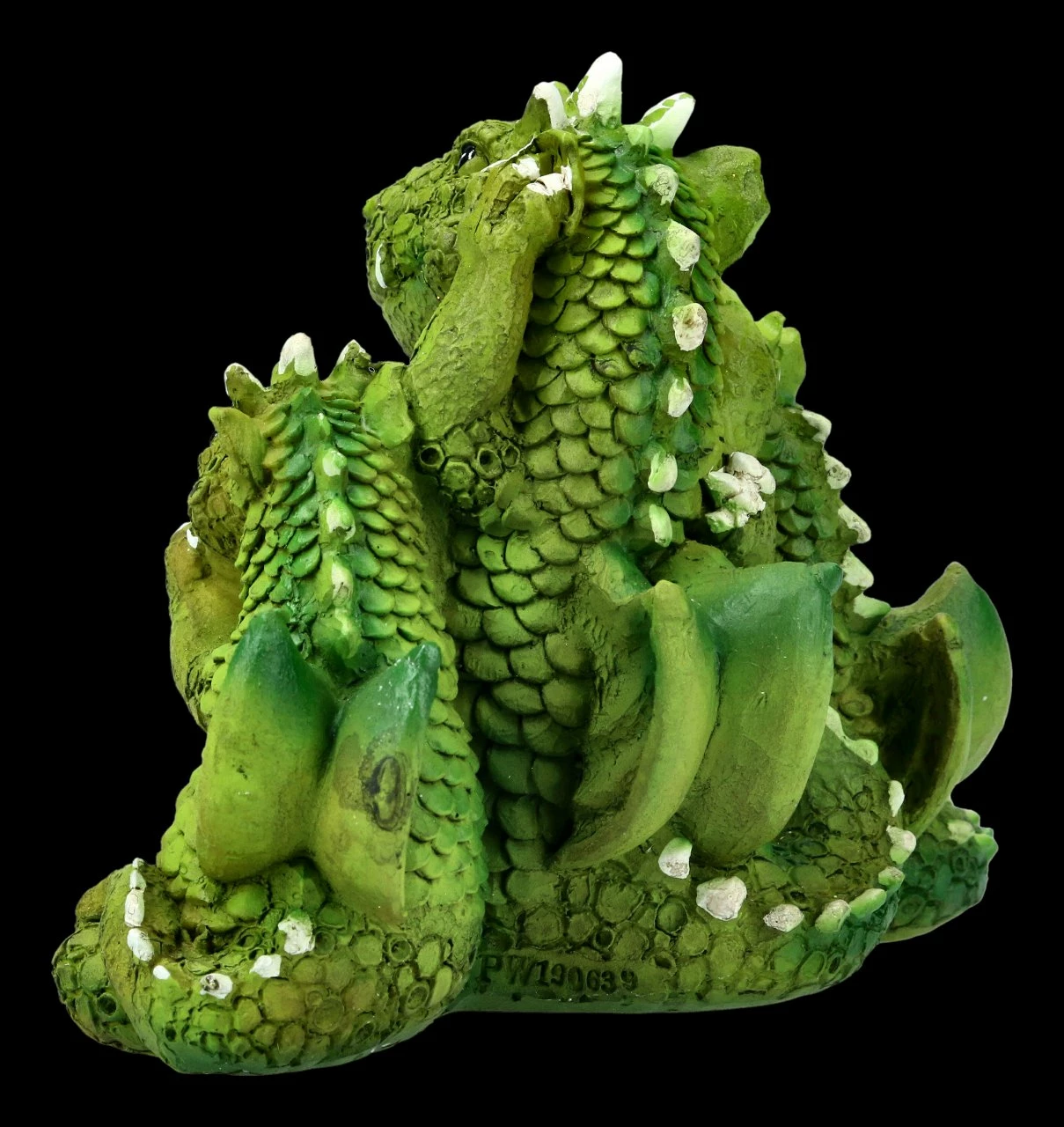 Zärtlich kuschelt sich die witzige Drachen Familie aneinander und zeigt, dass sie nichts Böses sehen, hören oder gar sagen möchte. Die süße Drachen Figur ist detailreich aus handbemaltem Kunststein (Polyresin) gefertigt und 9 cm hoch, 11 cm breit und 6,5 cm tief Diese niedliche Drachen Familie ist auch ein sehr witziges Geschenk, über das sich nicht nur Drachen Freunde freuen werden.