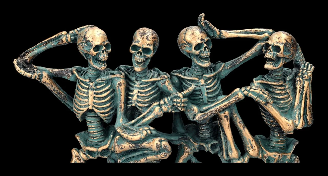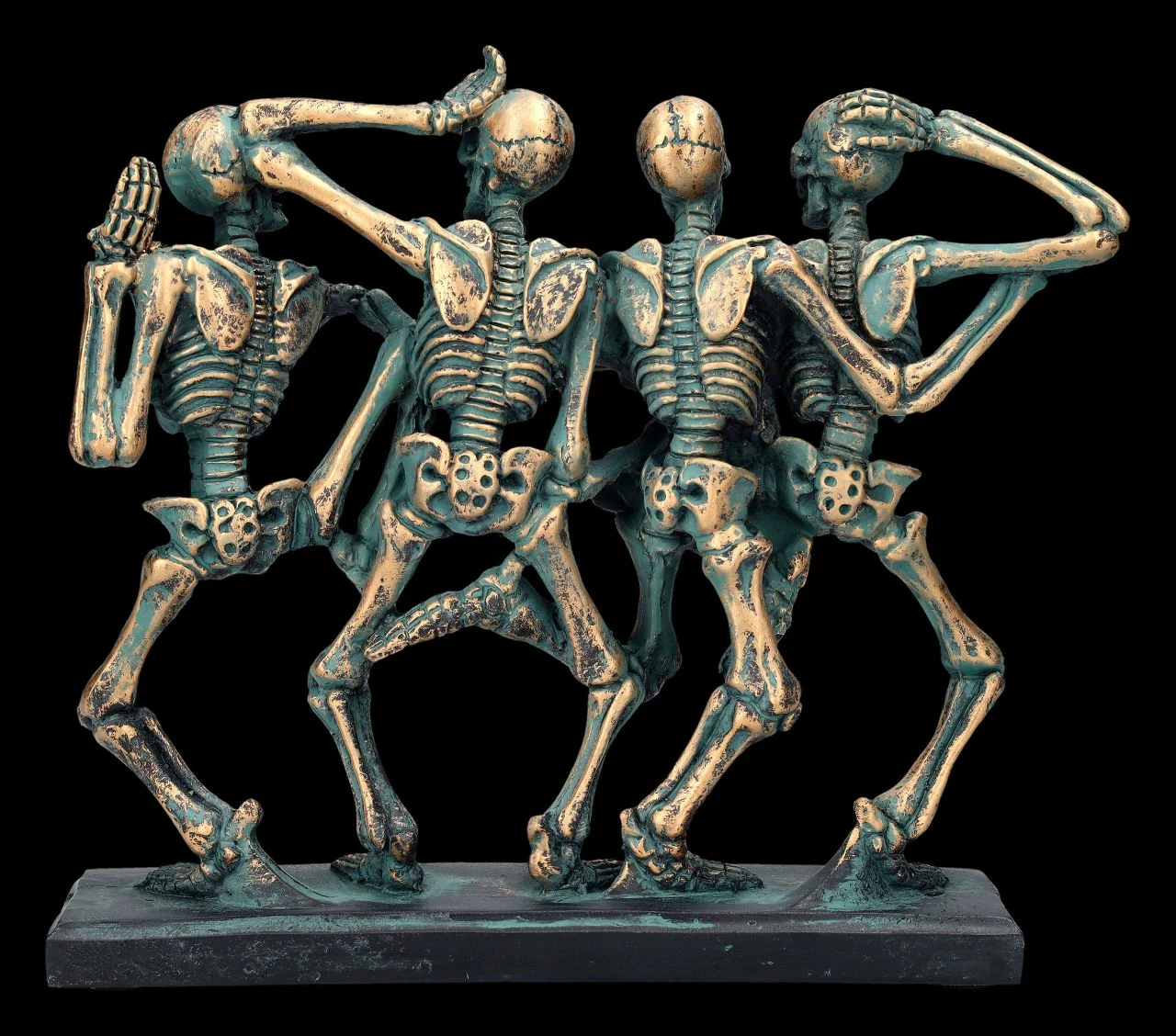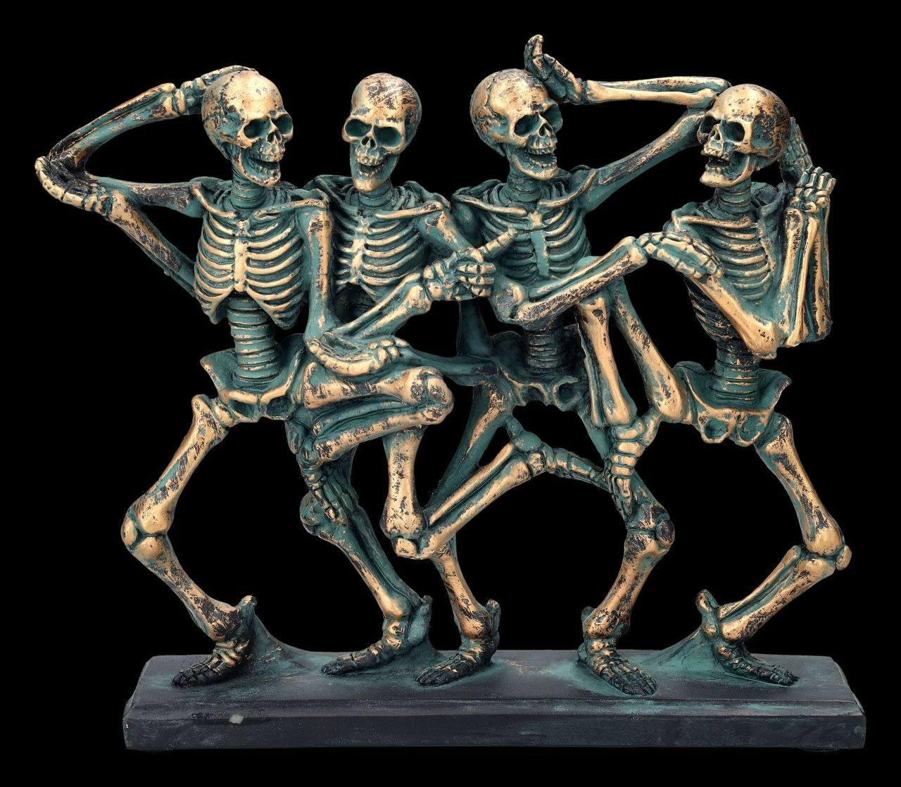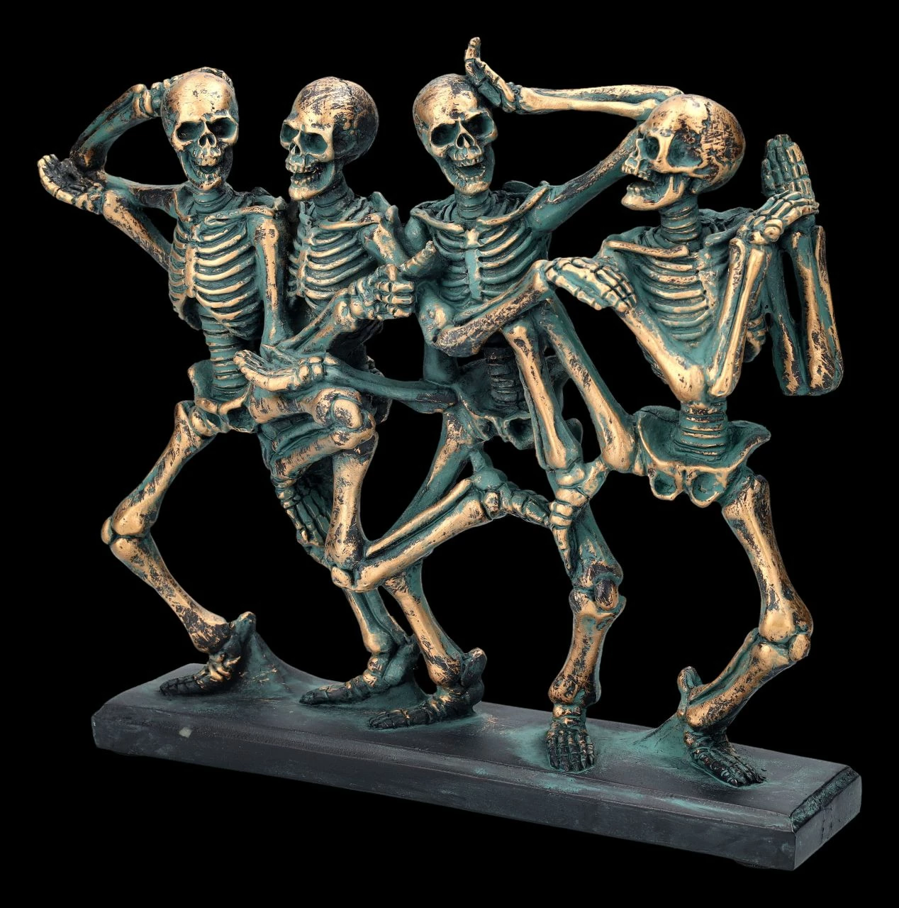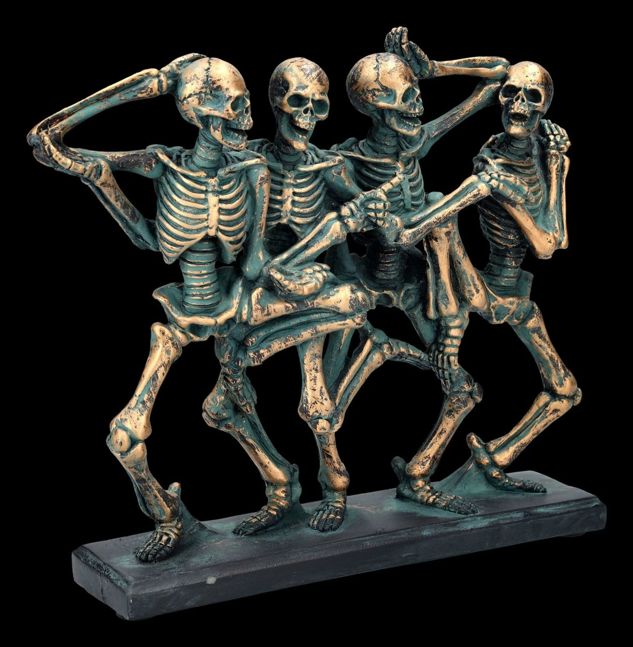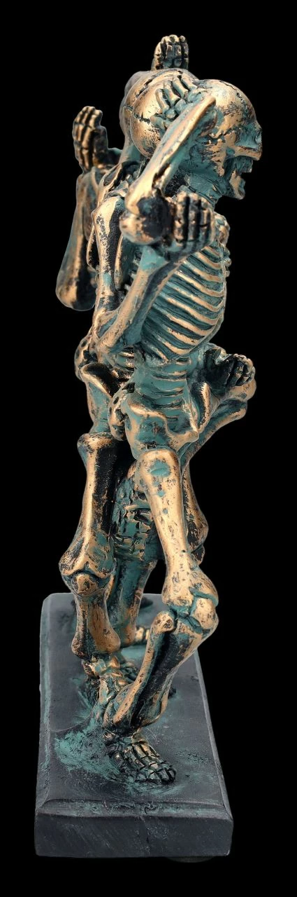 Na, in diesem Teil des Totenreiches geht es aber lustig zu. Die 21 cm hohe, 24 cm breite und 5,5 cm tiefe Dekofigur mit den temperamentvoll tanzenden Skeletten wurde detailreich aus handbemaltem Kunststein (Polyresin) gefertigt. Ob auf dem Schreibtisch, dem Sideboard oder im Regal – die tanzenden Skelette sind in jedem Ambiente ein absoluter Blickfang. Aber auch als humorvolles Geschenk sind sie natürlich sehr gut geeignet.