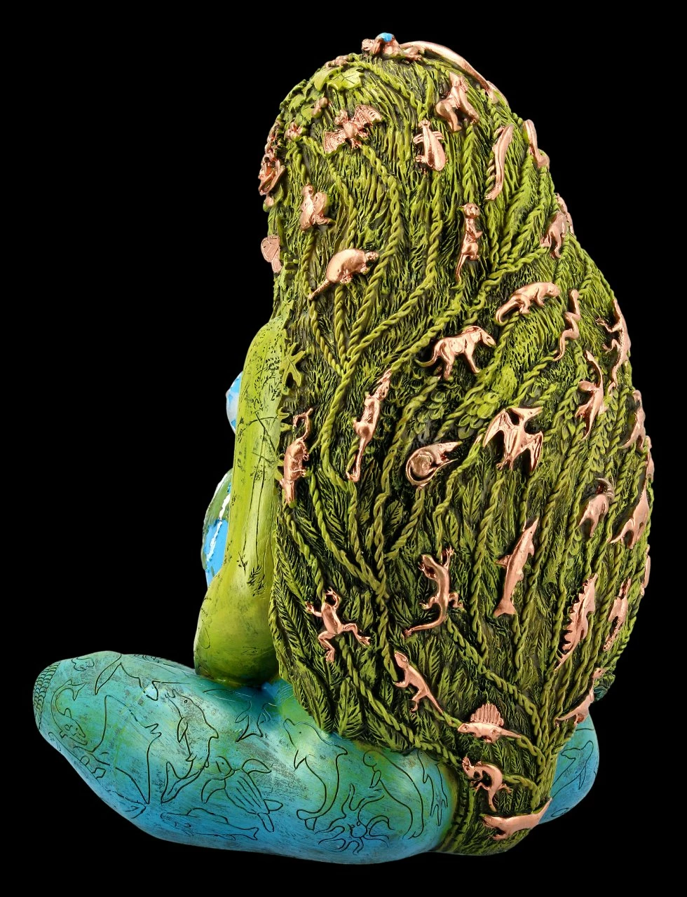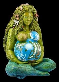 In der griechischen Mythologie gehörte die Göttin Gaia als Mutter Erde mit Demeter zu den wichtigsten Elementargöttern. Gaia wurde als das erste aus dem Urchaos entstandene Wesen bezeichnet, das alles weitere hervorbrachte und wurde außerordentlich verehrt. Diese detailreich handbemalte Gaia Figur ist eine wahre Hommage an die Schönheit der Natur und stellt wunderbar die Körperlichkeit, die Fruchtbarkeit und Mütterlichkeit der Göttin dar. Die Mutter Erde liebt und umsorgt alle Tiere und Pflanzen. Die fantastische, 35,5 cm hohe, 24,5 cm breite und 23 cm tiefe Figur der Mutter Erde wurde sorgfältig aus hochwertigem Kunststein (Polyresin) gefertigt und ist ein fantastisches Geschenk an einen Naturbegeisterten.