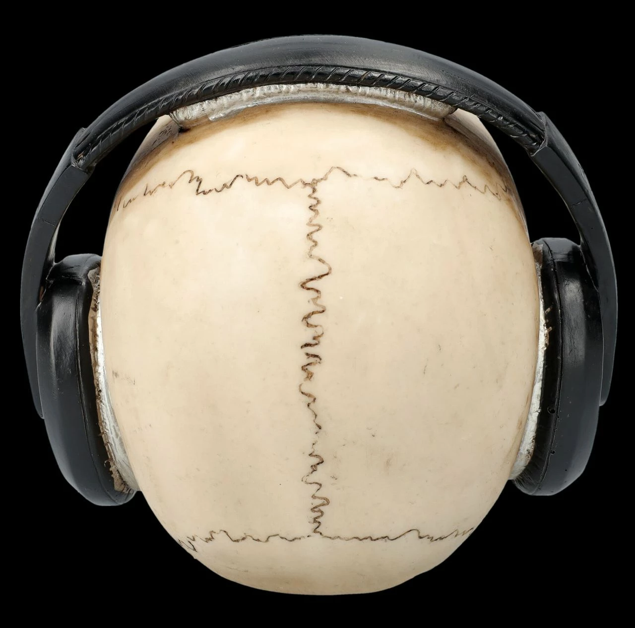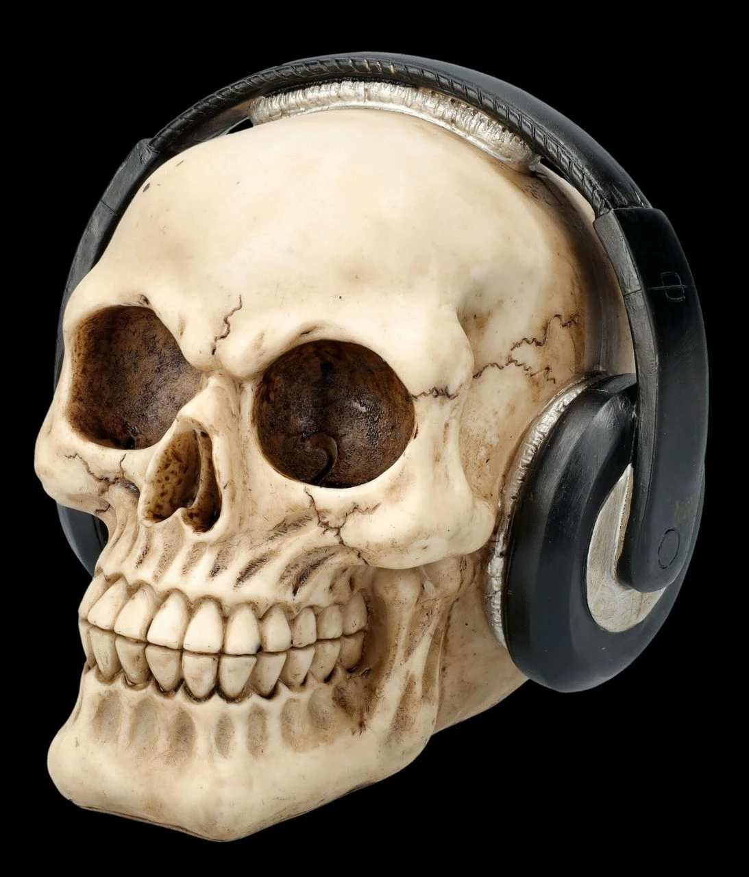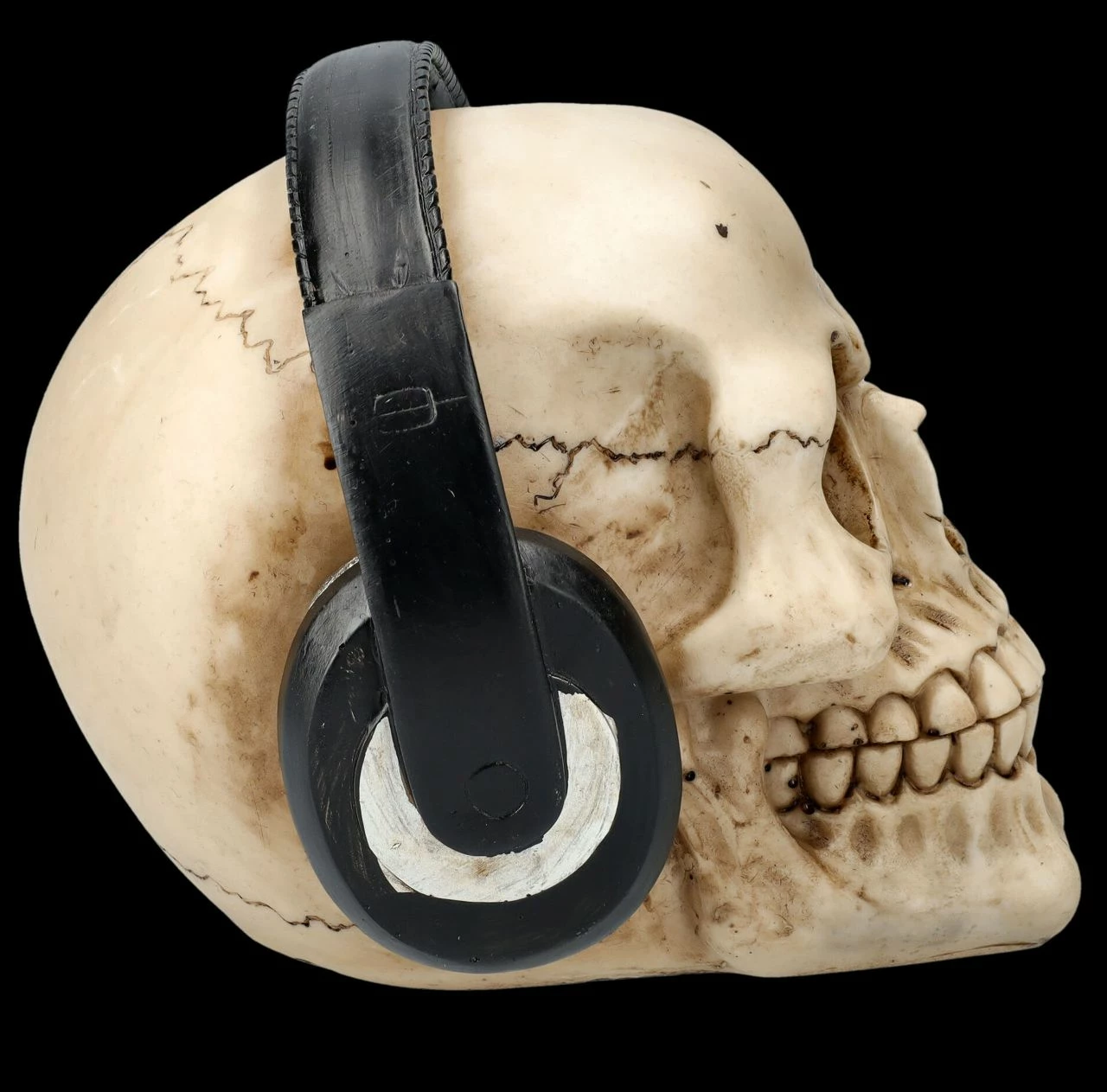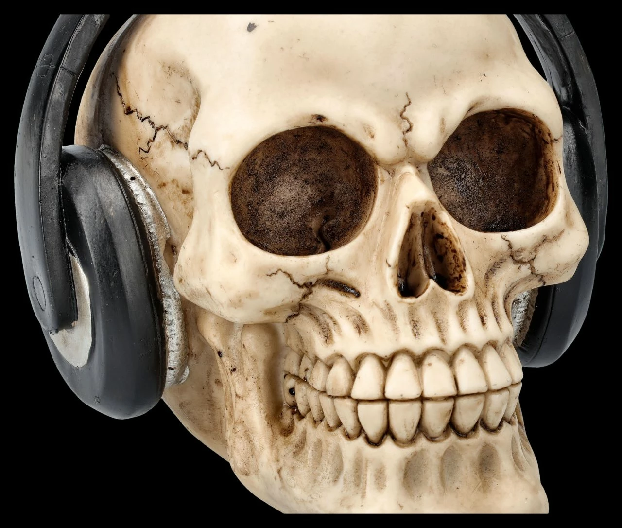Rockiger Totenschädel mit Kopfhörern: Perfekt für Musikfans
