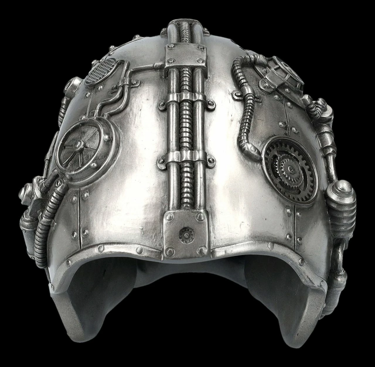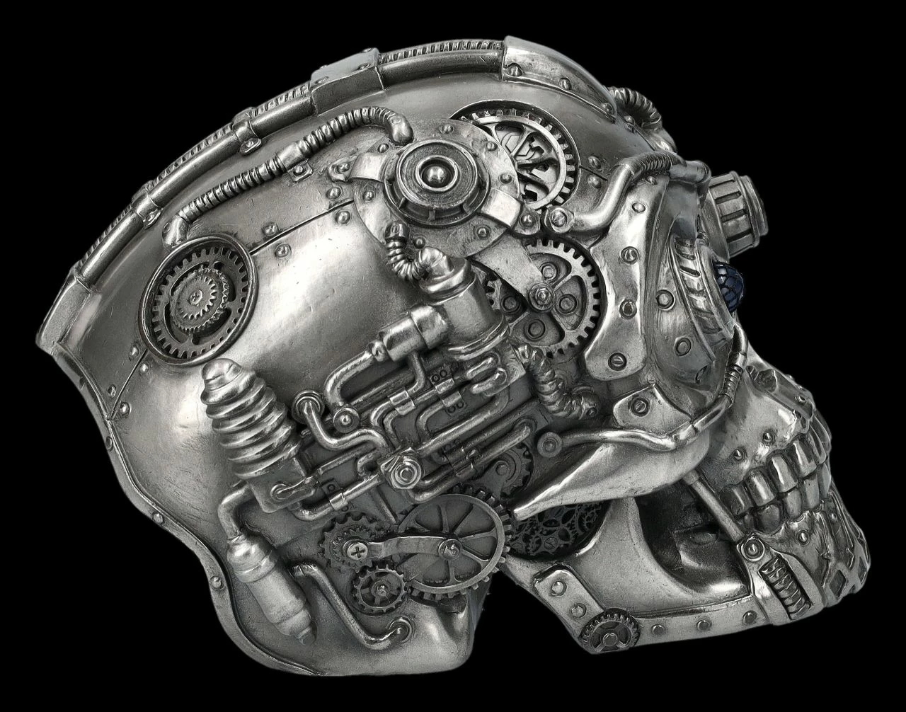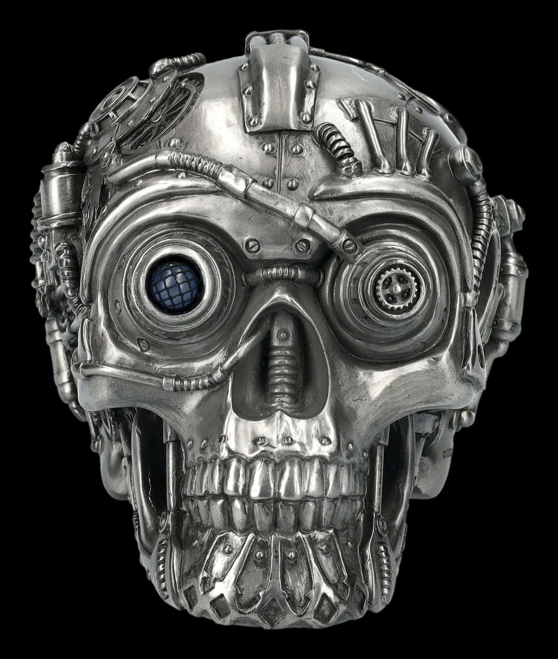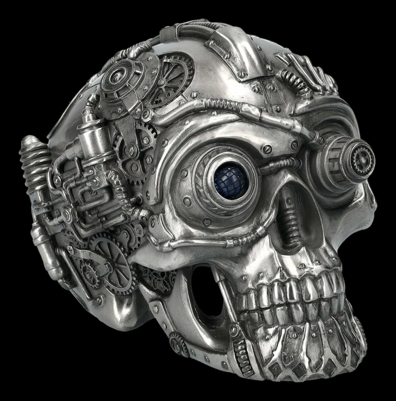 Wow – aus welcher Galaxie stammt dieser außergewöhnliche Totenkopf? Durch die batteriebetriebene LED-Beleuchtung leuchtet ein Auge des Cybertron magisch blau. Der 12 cm hohe, 11,5 cm breite und 16 cm tiefe Totenkopf im fantasievoll technisch wirkenden Steampunk-Stil stammt aus der Studio Collection von Veronese. Er ist mit den zahlreichen Details fantastisch aus hochwertigem Kunststein (Polyresin) gegossen und sorgfältig von Hand bemalt. Für die LED-Beleuchtung werden 3 x LR44 Batterien benötigt. Sie sind nicht in der Lieferung enthalten. Dieser Cybertron Totenkopf mit der LED Beleuchtung ist ein fantastischer Blickfang und das perfekte Geschenk für Steampunk-Fans.