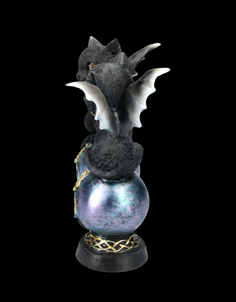 Wer fürchtet sich vor der Zukunft, wenn sie von den beiden, auf der Wahrsagerkugel sitzenden schwarzen Vampirkatzen vorhergesagt wird? Wohl sicher niemand, denn die beiden sind nicht nur absolut niedlich anzusehen, sondern tragen auch noch ein Pentagramm als Schutzamulett um den Hals. Und auch an der Wahrsagerkugel hängt ein Pentagramm als Schutzsymbol. Die niedlichen Vampirkatzen auf der Wahrsagerkugel wurden aus liebevoll handbemaltem Kunststein (Polyresin) gefertigt und kommen im 2er Set. Sie sind je 19 cm hoch, je 10 cm breit und je 8 cm tief und ein fantasievolles Geschenk, das man sogar mit Hexenfreunden teilen kann.