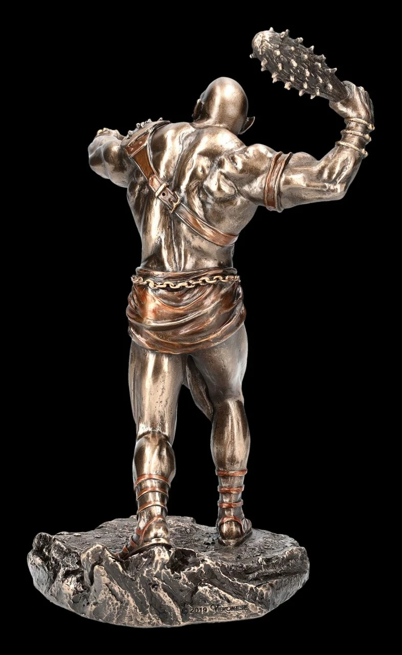 Die einäugigen Zyklopen, wie Polyphem aus Homers Odysee, galten in der griechischen Mythologie als gewaltbereite und menschenfressende Riesen. Die Zyklopen-Figur aus der Studio Collection von Veronese steht angriffslustig auf einem Felsen und trägt bedrohlich in der hoch erhobenen rechten Hand einen Streitkolben Die beeindruckende Darstellung des Zyklopen mit dem Streitkolben wurde aus edel bronziertem und zurückhaltend coloriertem Kunststein (Polyresin) gefertigt. Sie ist 21 cm hoch, 12,5 cm breit und 10,5 cm tief und als außergewöhnliche Deko nicht nur für Bewunderer des antiken Griechenlands ein fantastisches Geschenk .
